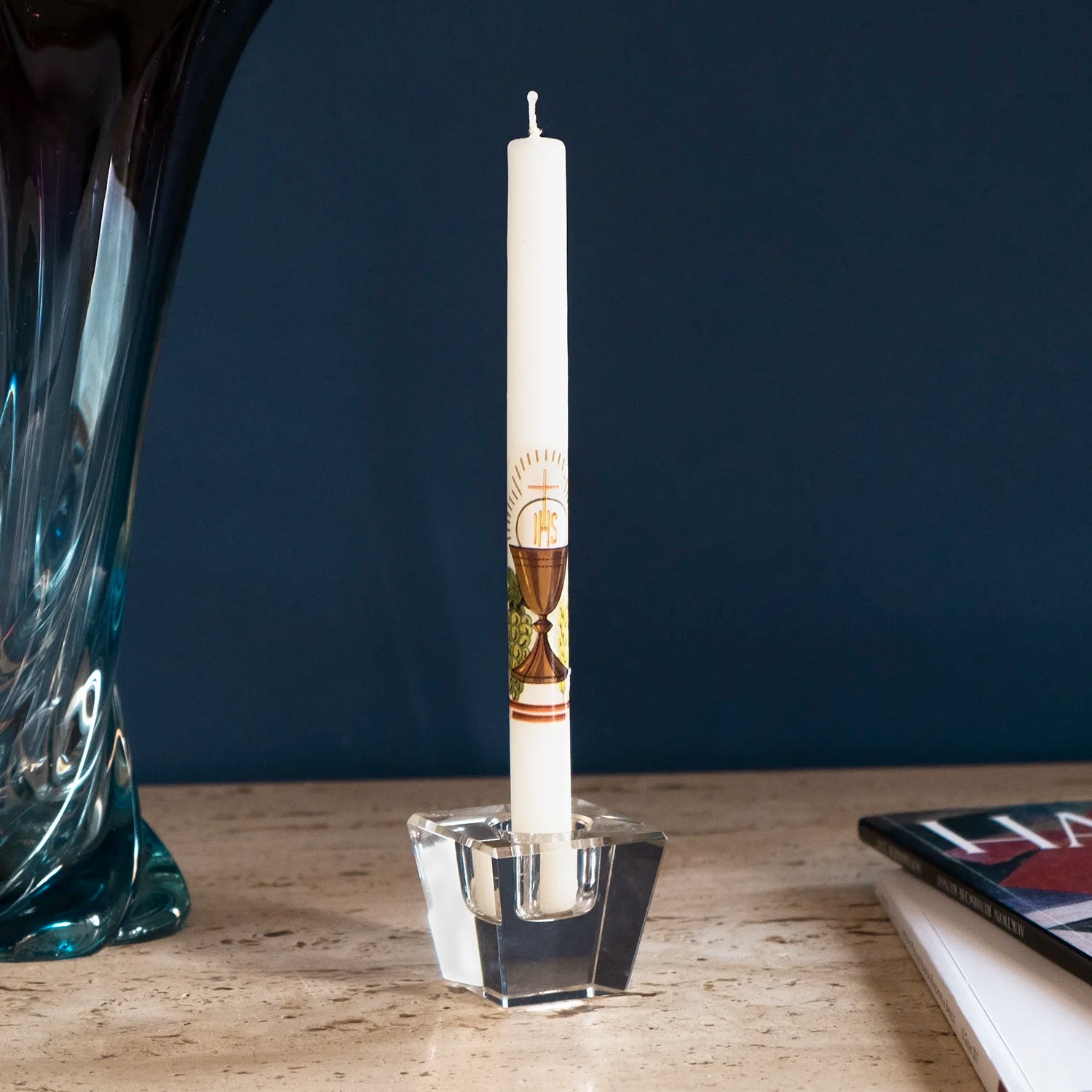 Catholic votive candle for the Sacrament of First Communion, crafted from authentic white beeswax. A meaningful keepsake from the Vatican, it’s the perfect way to celebrate the start of a new spiritual journey.