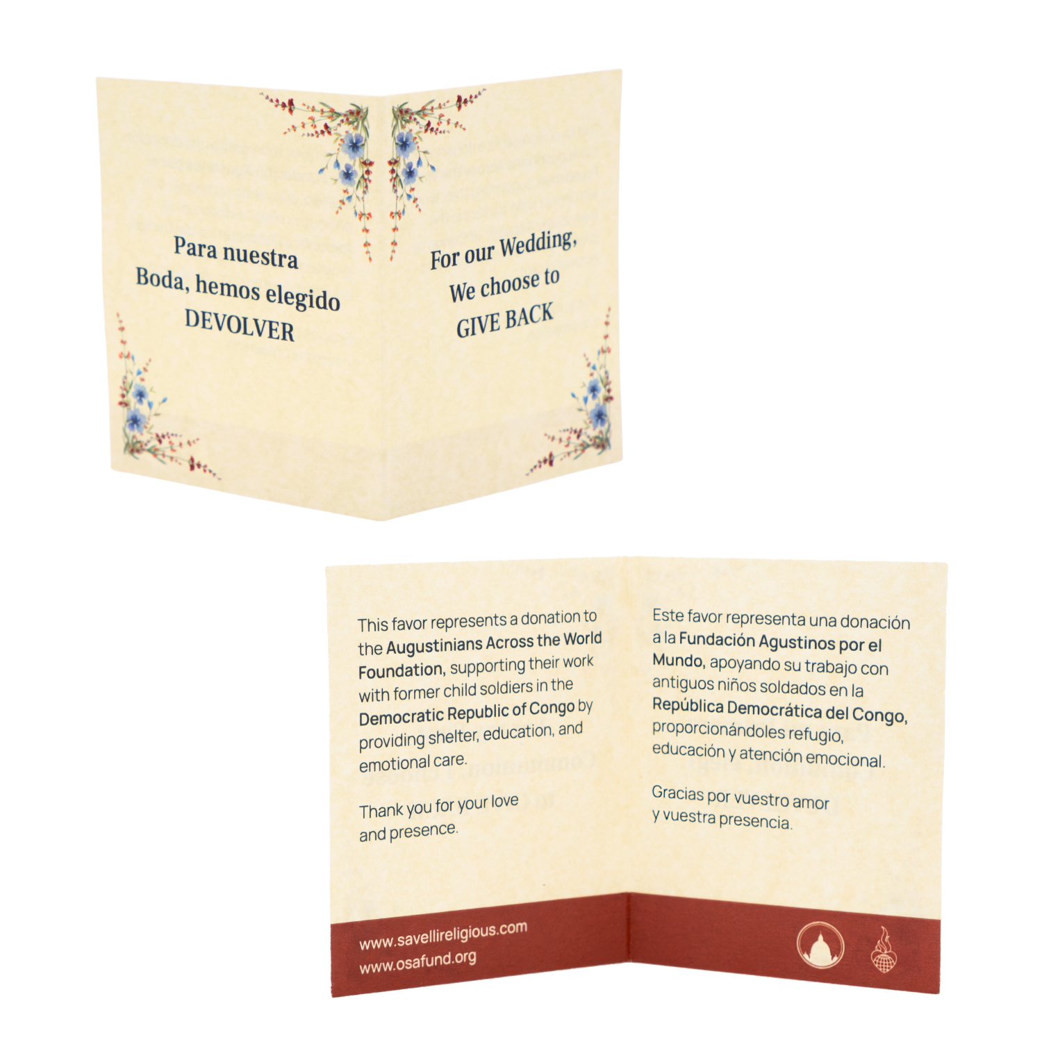 Each favor comes with a keepsake card reading “For our Wedding, we choose to Give Back”, inviting your guests to share in a meaningful gesture of solidarity.