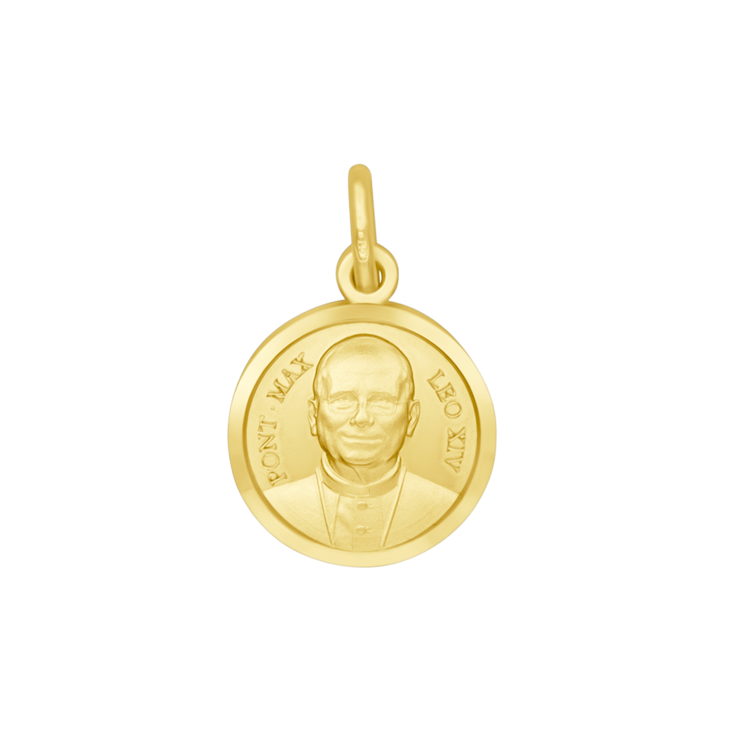 Medalla del Papa León XIV en oro de 18k, emblema sagrado de gracia papal y misericordia divina. Forjado en oro de 18k con un refinado acabado mate, este colgante honra un legado de guía espiritual. Una reliquia de fe sobria y eterna, che ofrece una conexión atemporal con la tradición del Vaticano.