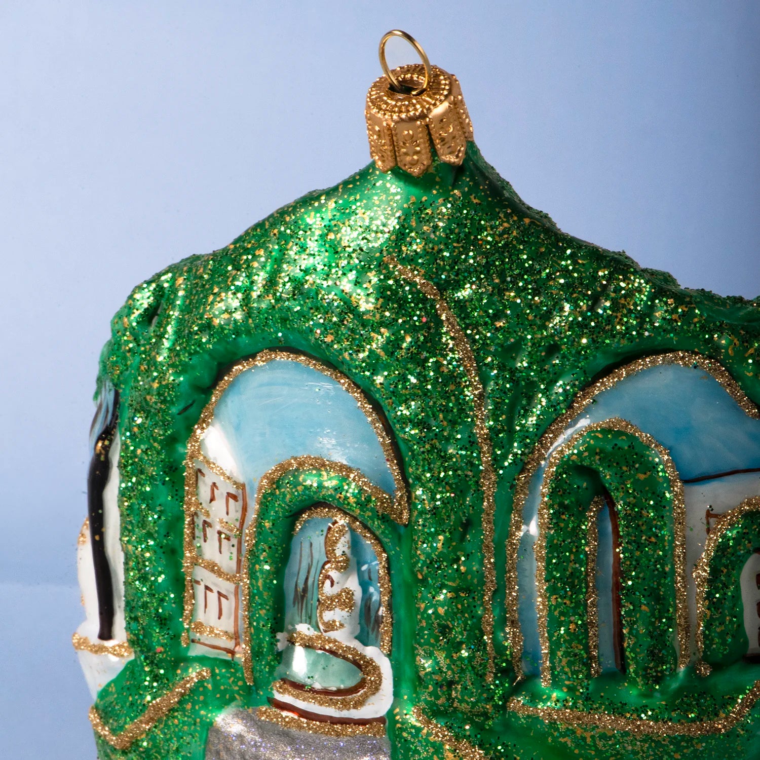 Esta decoración navideña representa la plaza de San Pedro, la Basílica y los jardines vaticanos. Hecha totalmente en vidrio soplado pintado a mano, también se la puede considerar un souvenir original del Vaticano. Cuélgala a tu árbol de Navidad y sorprende a tus huéspedes durante las fiestas navideñas. Tamaño: mediano/grande.