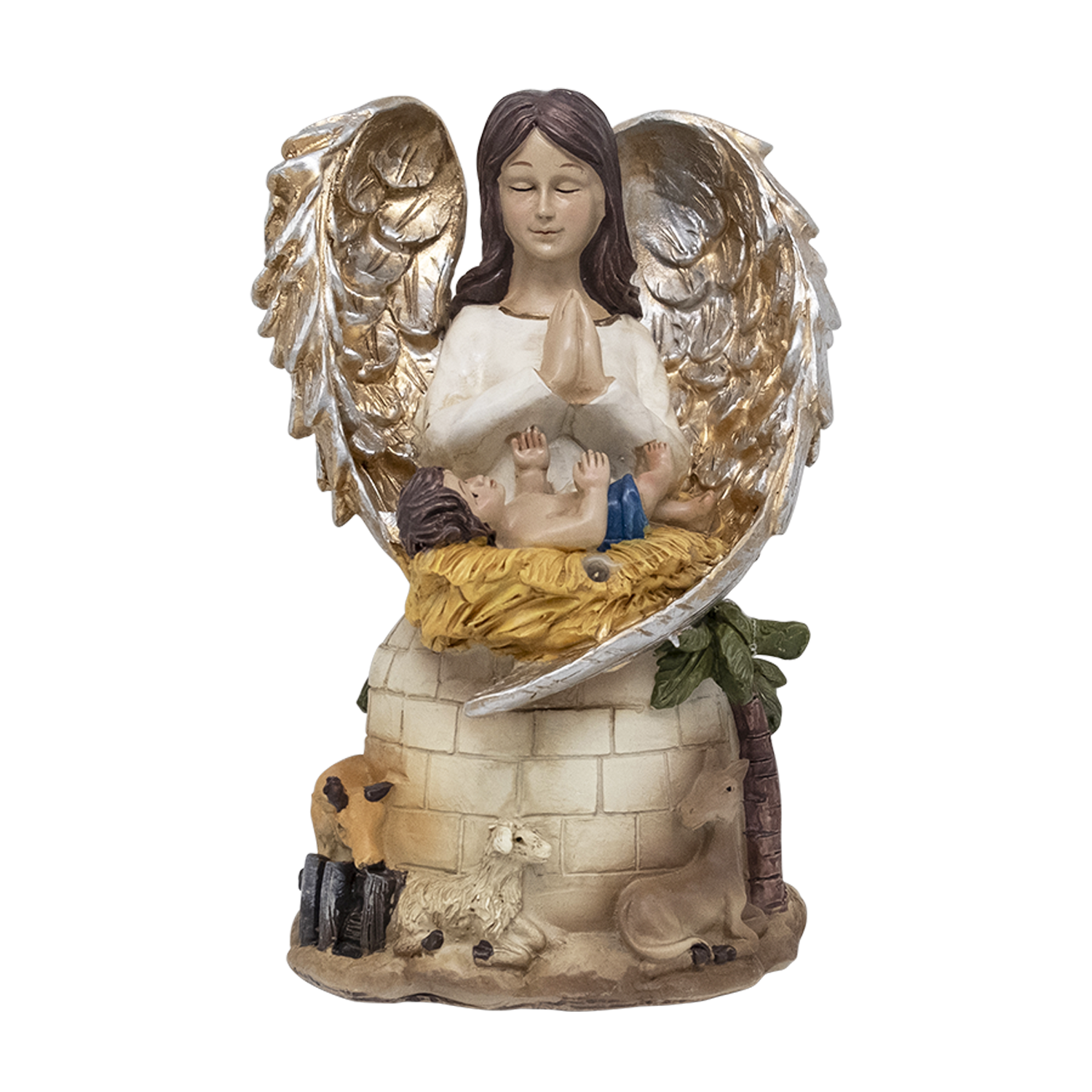 Este carillón de ángel navideño está finamente elaborado en resina y gira suavemente al ritmo de la melodía de “Noche de paz”, aportando un toque sereno de gracia a la temporada.