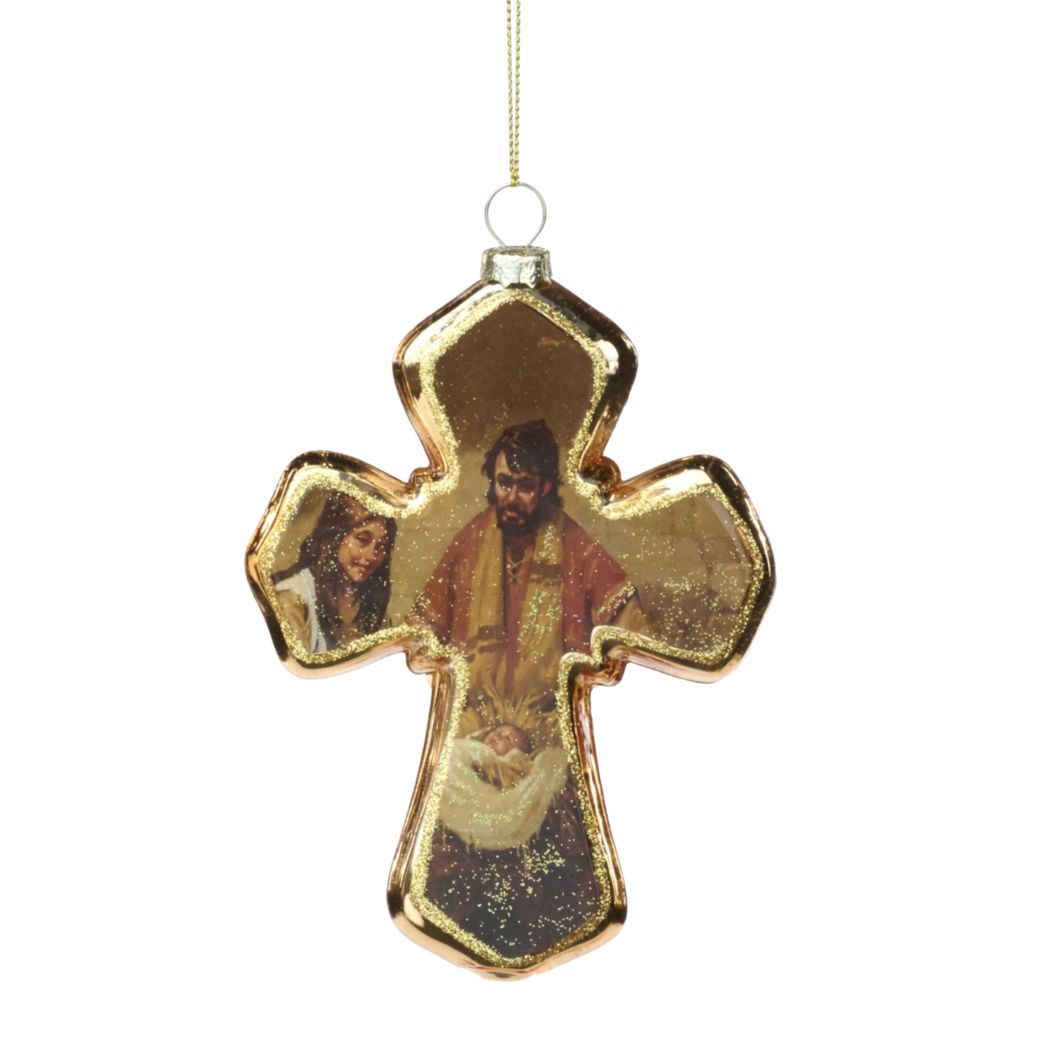 Esta cruz de cristal para la Natividad representa la fe atemporal y la artesanía refinada. Hecha a mano con detalles dorados, aporta un toque de tradición a cualquier árbol de Navidad.