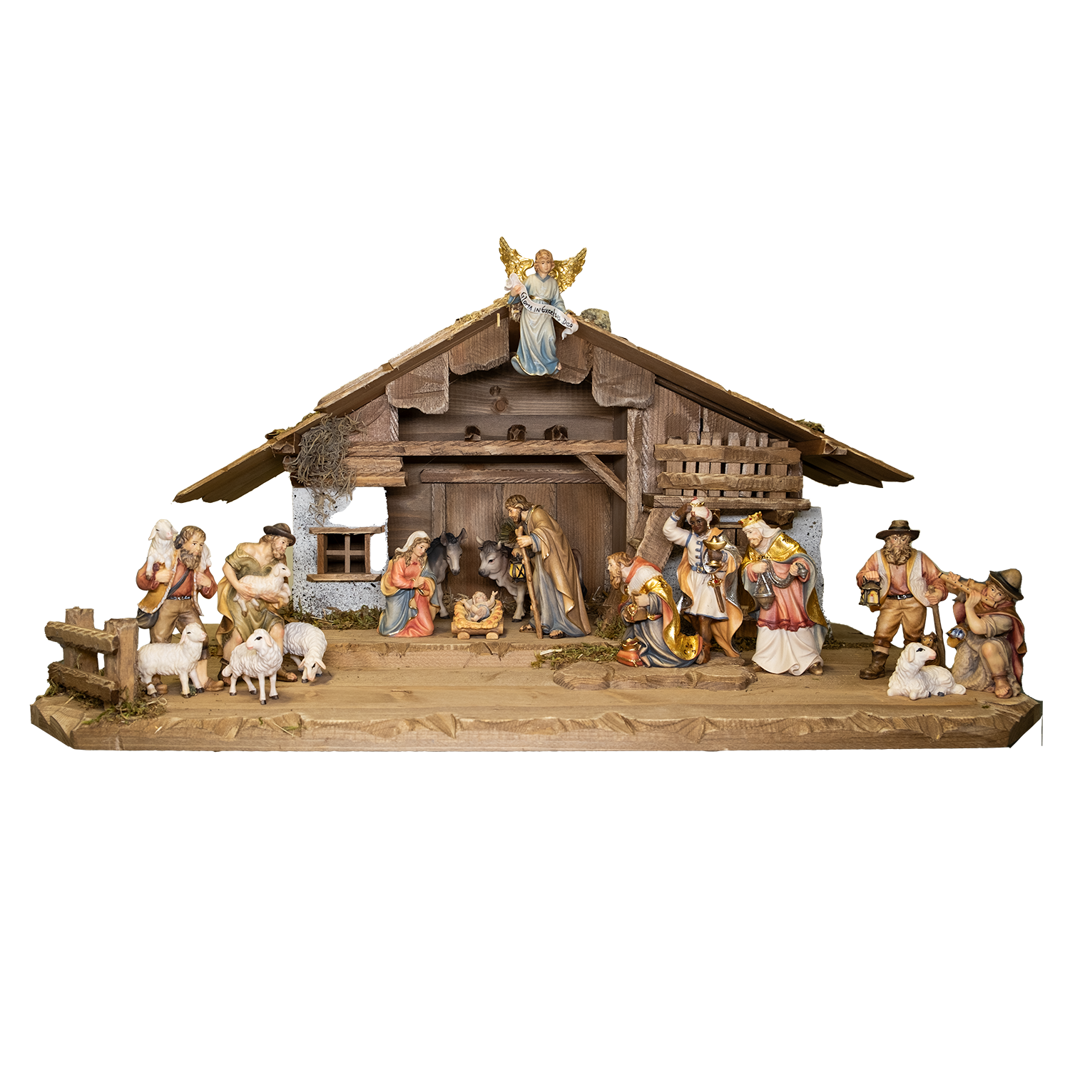 Este belén artesanal es una obra de arte que celebra la tradición navideña, convirtiéndose en un complemento significativo para cualquier decoración festiva. Tallado y pintado a mano con meticulosidad, presenta la escena del pesebre con los Reyes Magos, el ángel, los pastores y los animales en un estilo delicado y a la vez moderno, todo ello dispuesto alrededor de un establo rústico. La atención al detalle y el acabado en madera natural crean una atmósfera cálida y atemporal, llevando la verdadera esencia de la Navidad a su hogar.