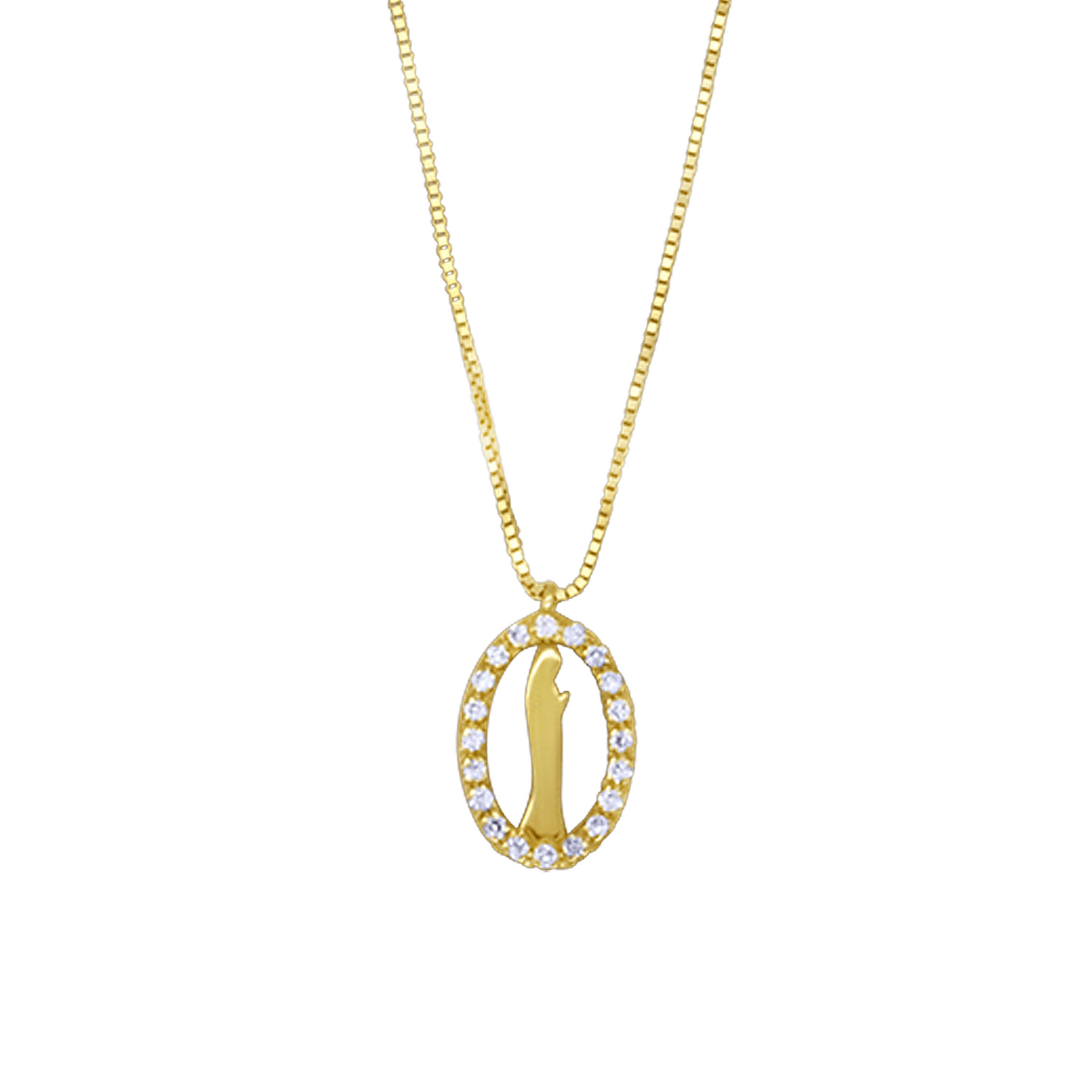 Sutil y elegante, este collar en oro de 18kt presenta un colgante ovalado con el perfil estilizado de la Virgen. Rodeado por un halo de diamantes blancos brillantes de 0,08 ct, el diseño transmite serenidad, luz y devoción.
