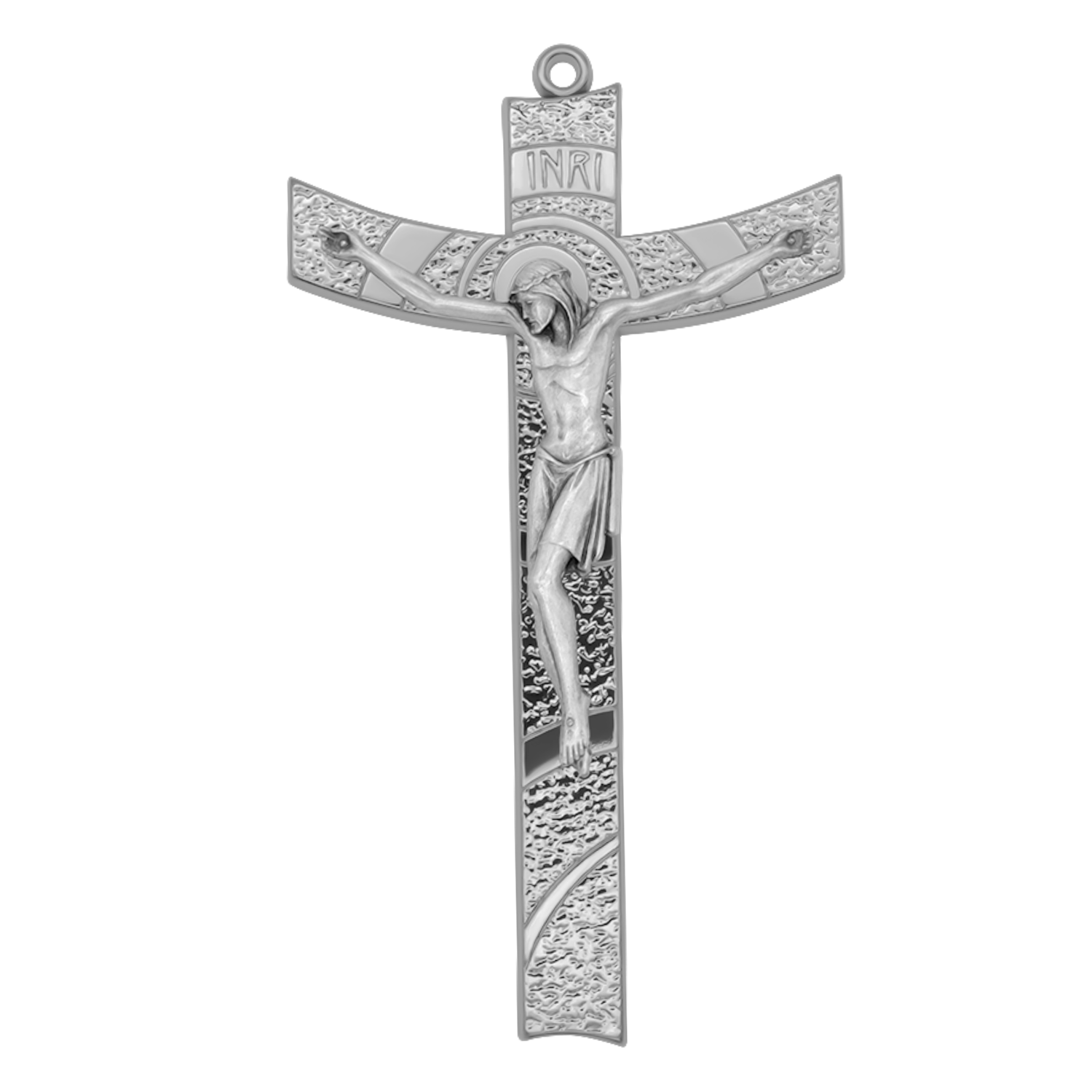 Este crucifijo de pared presenta un corpus finamente esculpido en tono plateado y está elaborado con reverencia, aportando la presencia espiritual de Jesús a cualquier espacio.