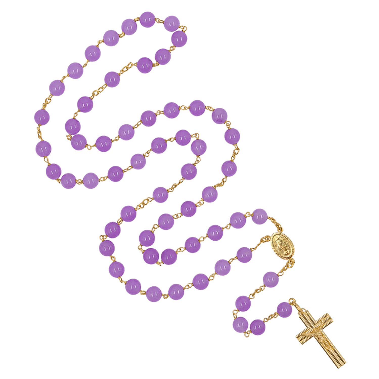 L'intuizione e la spiritualità simboleggiate dal viola intenso dei grani compongono questo rosario in argento dorato, donando un valore autentico al design classico. Al centro viene riportata la Medaglia Miracolosa, un ricordo che ci invita a pensare alla nostra salvezza attraverso Gesù Cristo.