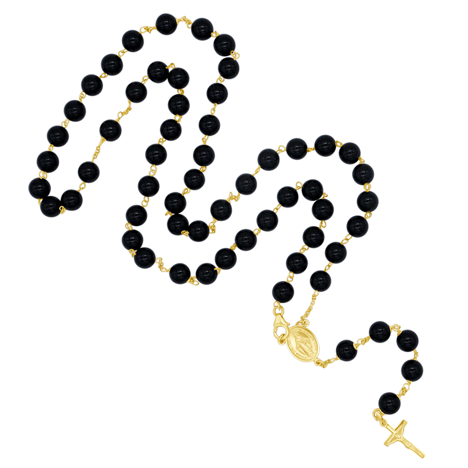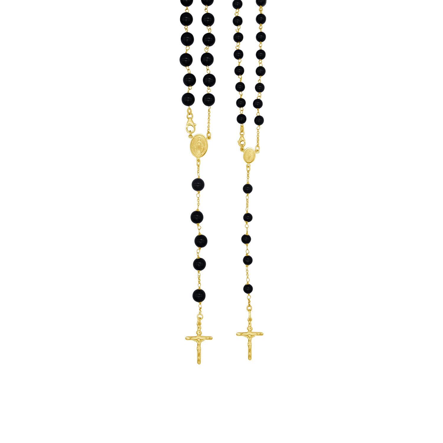 I grani in onice nero conferiscono a questo rosario un aspetto raffinato e senza tempo. Interamente realizzato con legature in oro 18kt, presenta una Medaglia Miracolosa centrale, finemente dettagliata ed elegantemente integrata nel design. Realizzato con cura e materiali preziosi, questo rosario in onice è concepito come un regalo prezioso per occasioni significative. Disponibile in due misure.