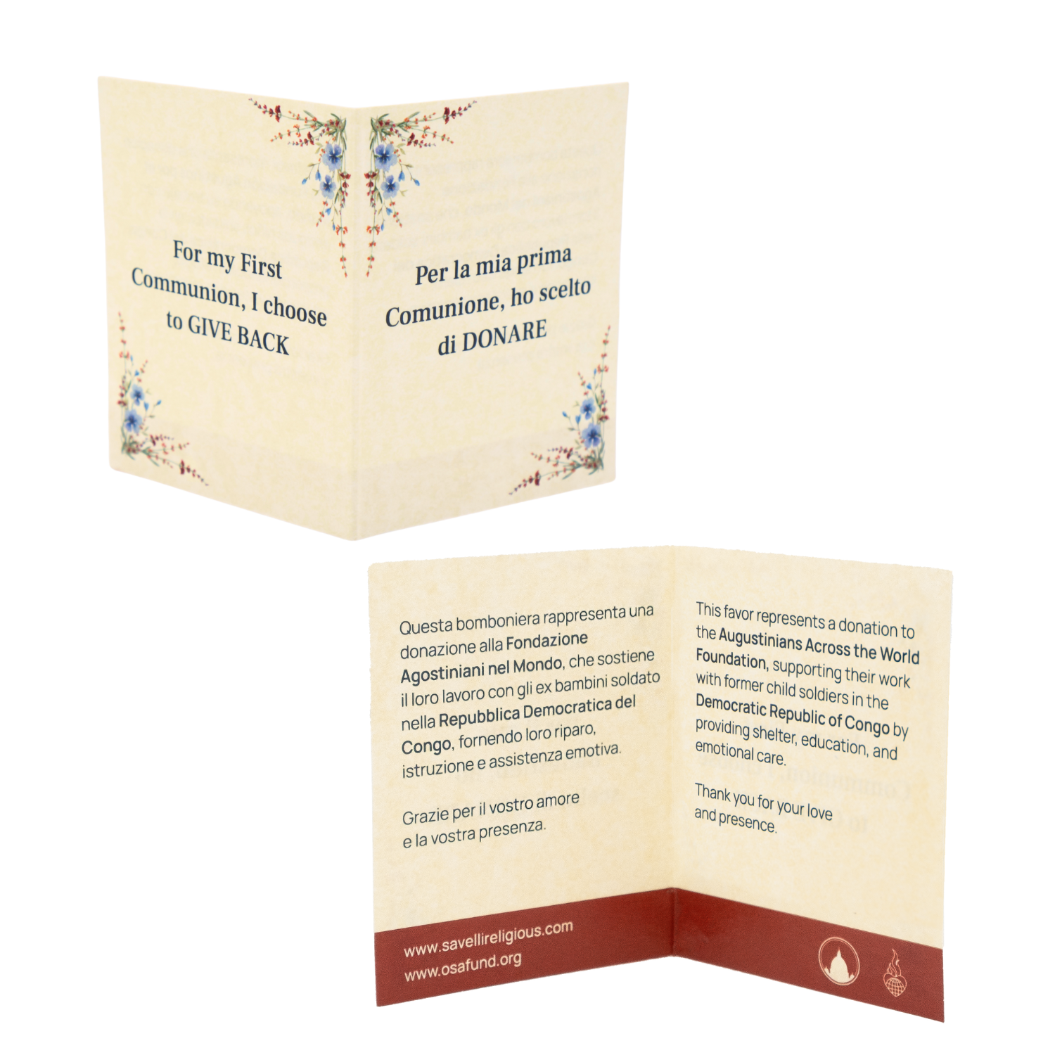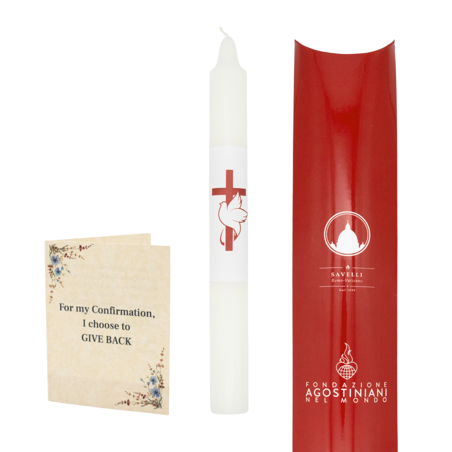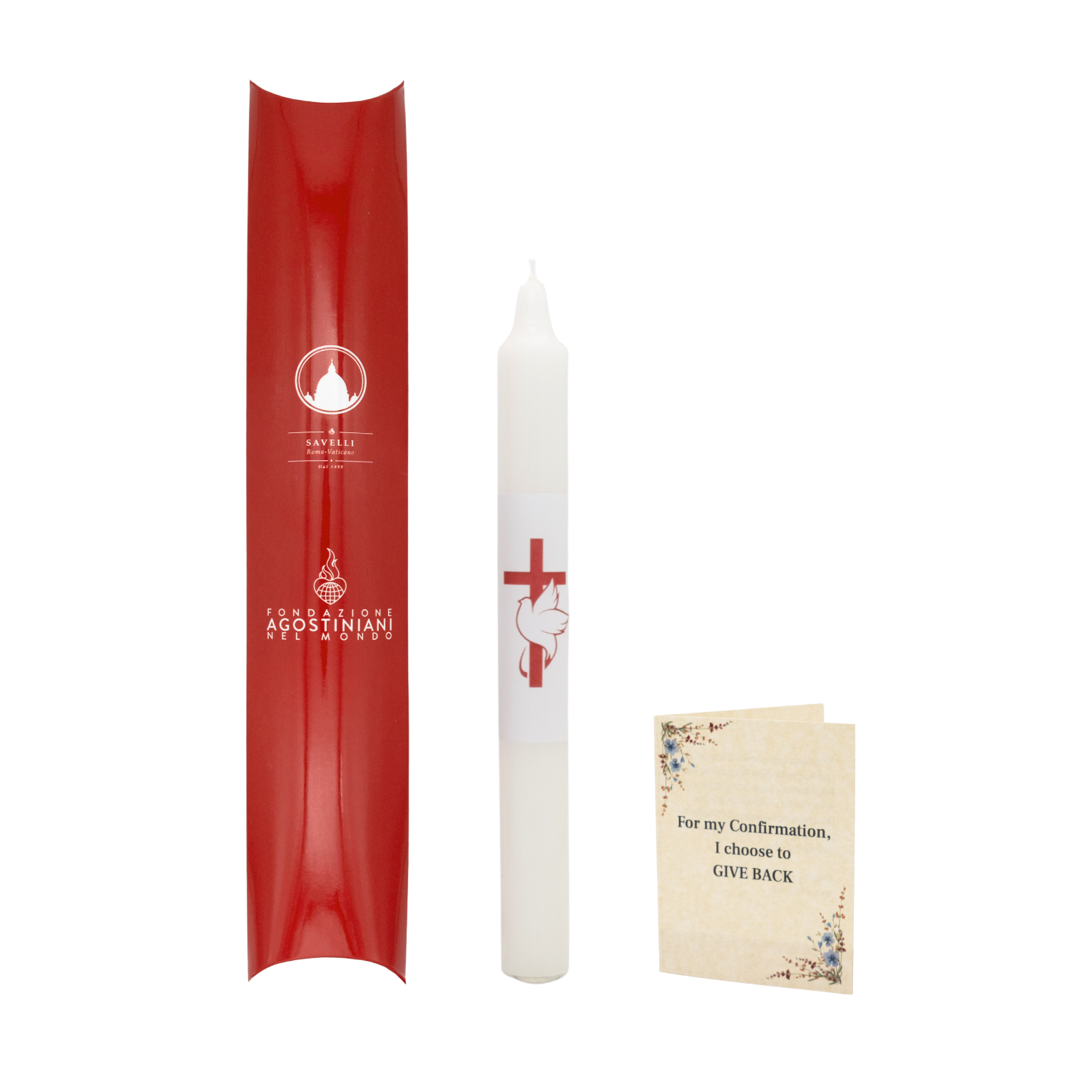 Questa candela solidale per Cresima è stata creata da Savelli Religious per OSAFUND, a sostegno della missione della Fondazione nel portare speranza e dignità alle comunità più bisognose. Ogni candela è accompagnata da un biglietto ricordo con la frase “Per la mia Cresima ho scelto di donare”, invitando i vostri ospiti a condividere un gesto di autentica solidarietà.