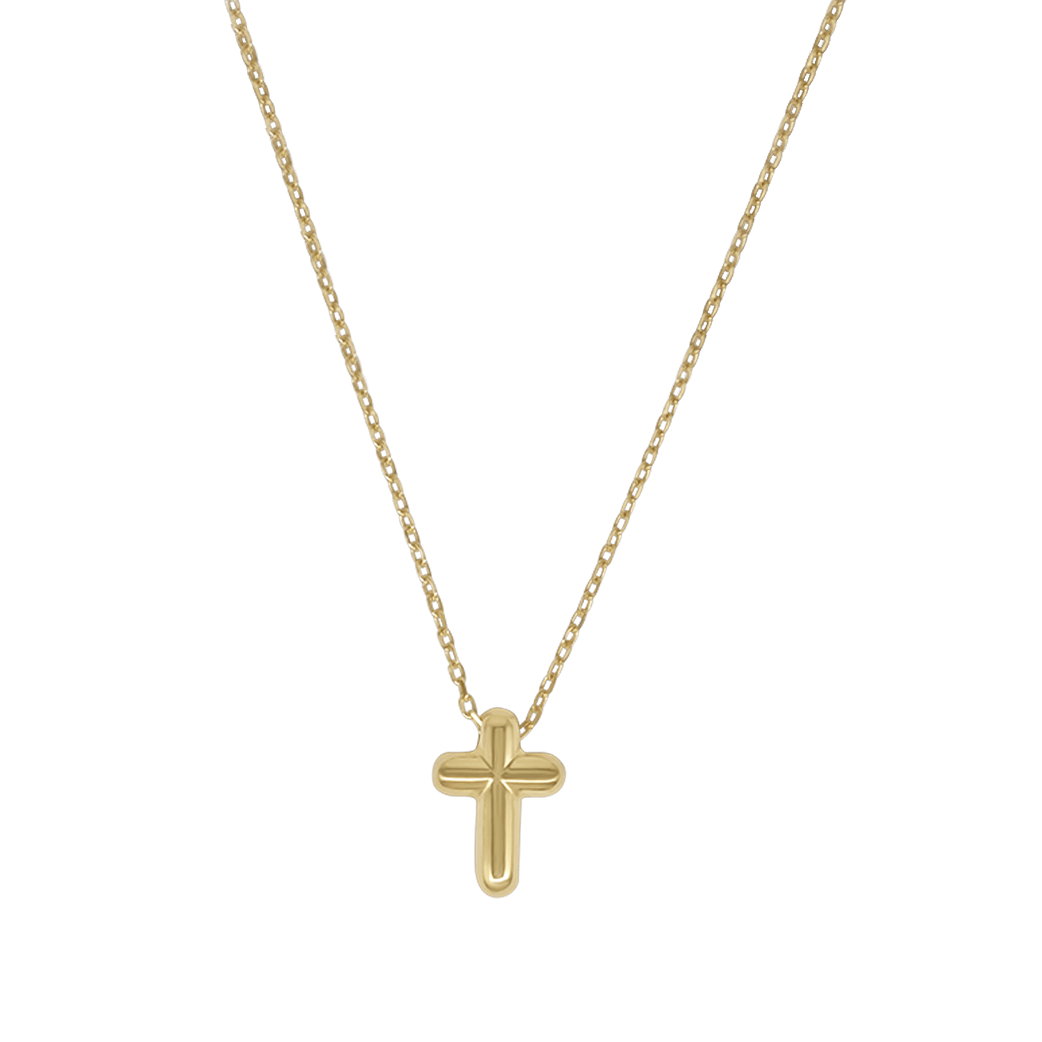 Questa collana con croce presenta un pendente in argento placcato oro 18k dal design contemporaneo, sospeso a una catena raffinata. Moderna e senza tempo, è un’espressione significativa di fede e un gioiello da indossare e custodire ogni giorno.