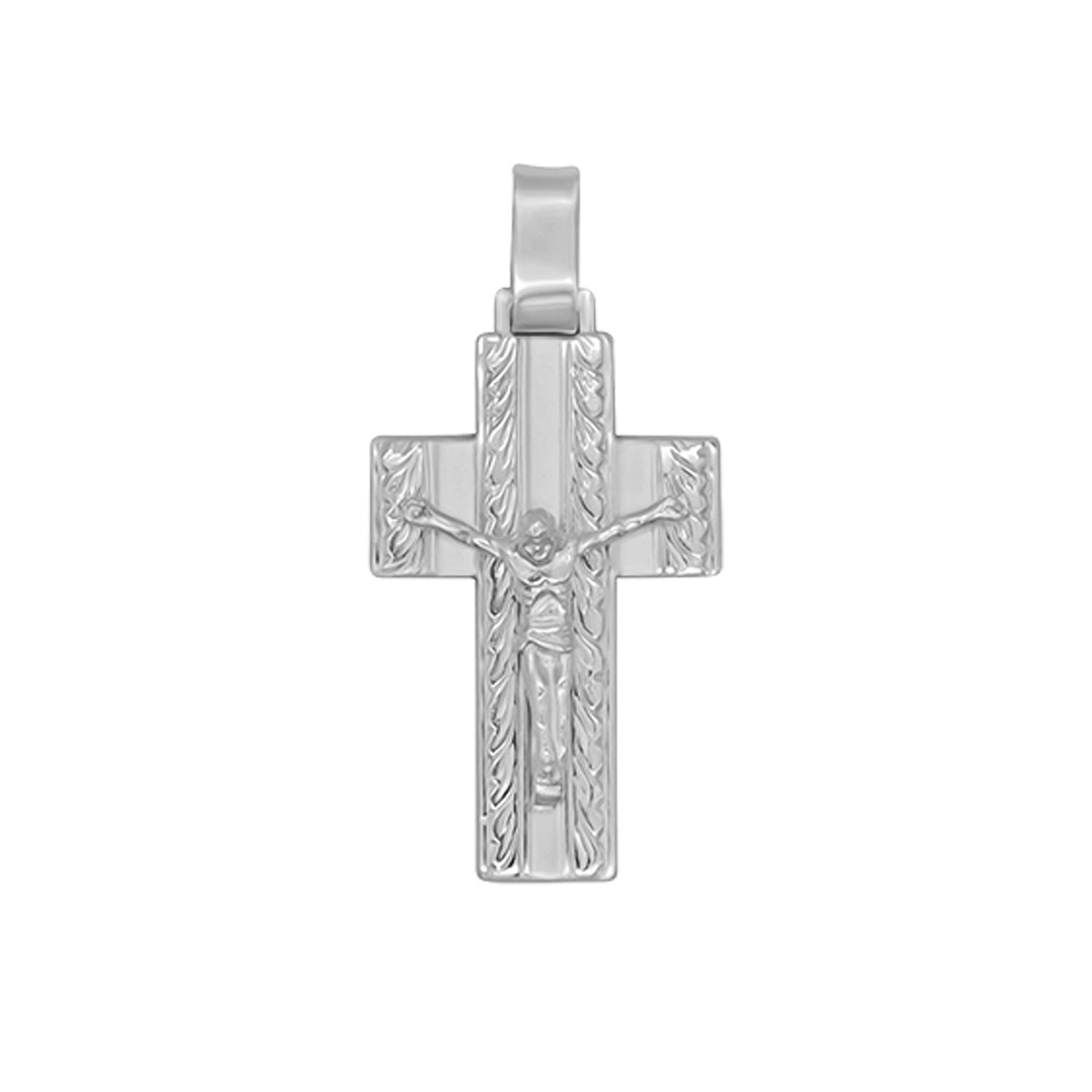 Questo ciondolo crocifisso in argento presenta incisioni raffinate e una figura di Cristo delicatamente scolpita. Un simbolo senza tempo di fede, realizzato con sobria eleganza.