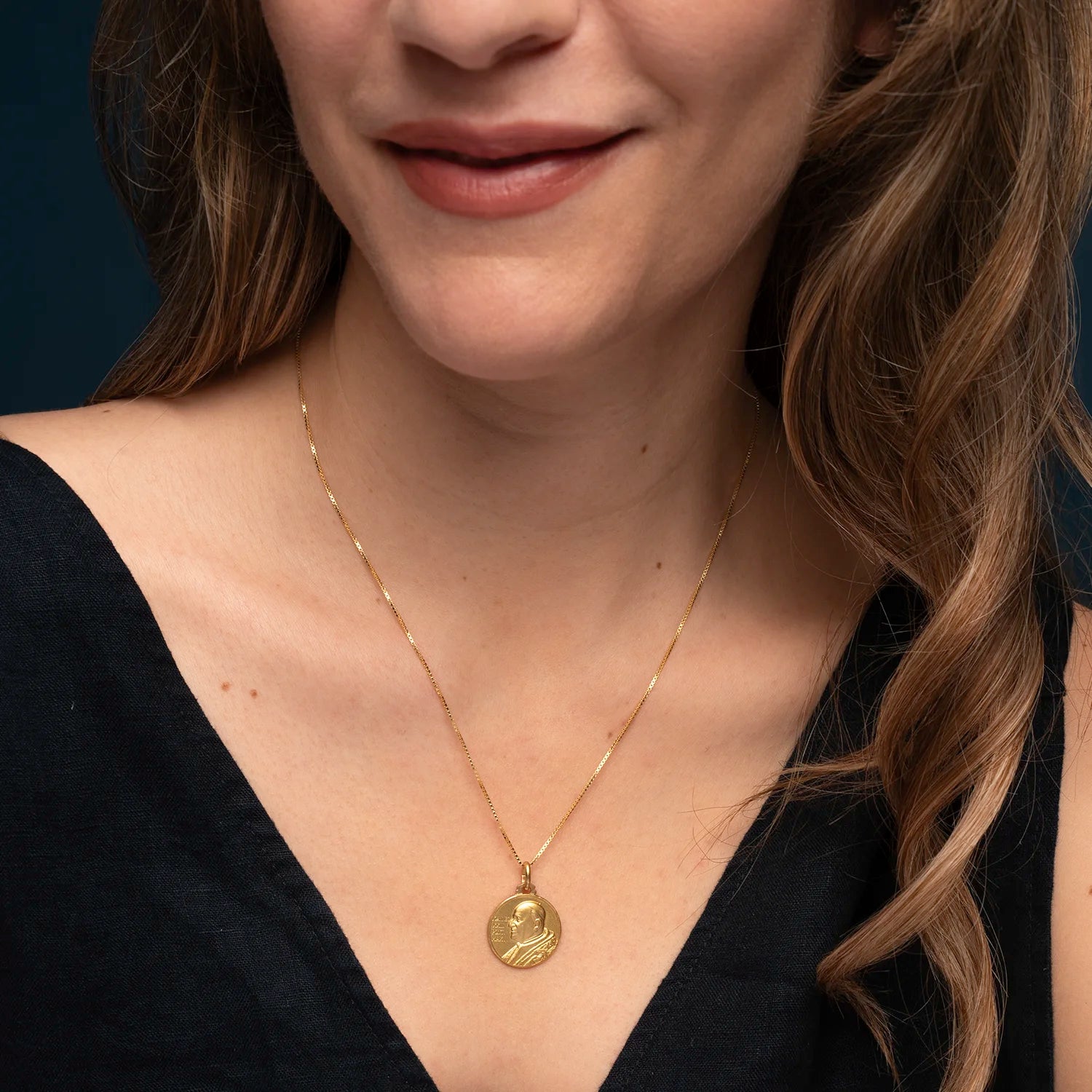 La Medaglia rappresenta Papa Giovanni XXIII. Fu eletto papa il 28 ottobre 1958 e in meno di cinque anni di pontificato riuscì ad avviare il rinnovato impulso evangelizzatore della Chiesa Universale. È ricordato con l’appellativo di “Papa buono”. Fu terziario francescano ed è stato beatificato da papa Giovanni Paolo II il 3 settembre 2000; è stato canonizzato il 27 aprile 2014 insieme a Giovanni Paolo II.