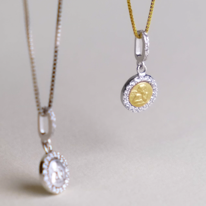 Angel pendant with white Zirconia in Sterling Silver 925, inspired to the Raffaello Sanzio's picture.
