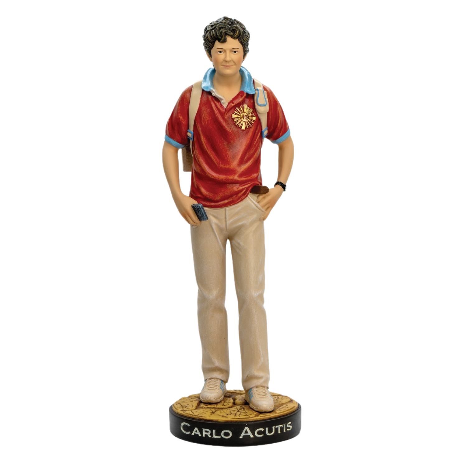 This finely crafted resin statue pays tribute to Blessed Carlo Acutis—Millennial, visionary, and patron saint of internet. Rendered with quiet elegance, the figure captures Carlo’s youthful spirit and deep devotion, clad in his signature casual attire, a reminder that sanctity lives in the everyday.