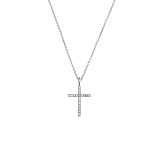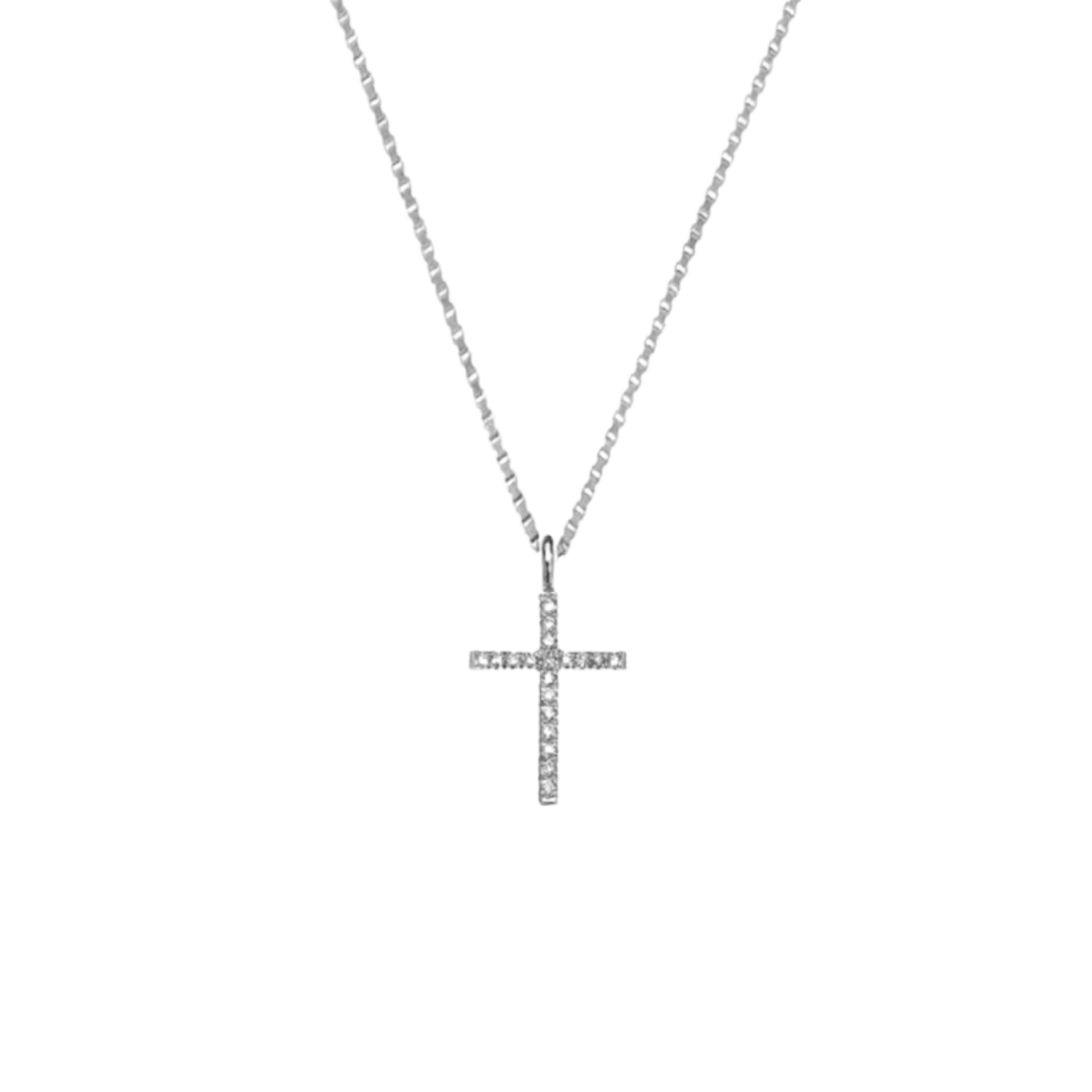 18K White Gold set composed by an adjustable 40/45 cm box chain and a cross pendant with 0,10K diamonds.