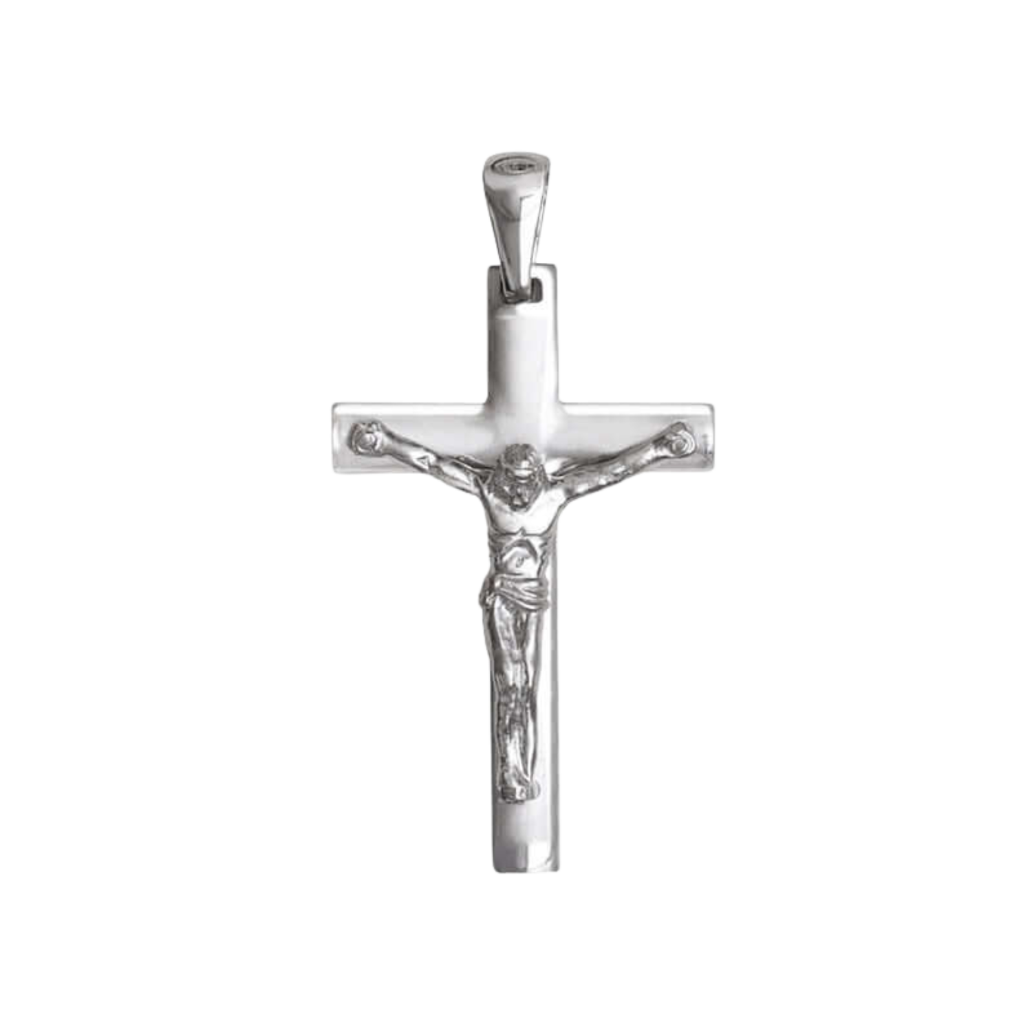 Large cross pendant featuring matt surface and polished edges. Entirely made of Sterling Silver.
