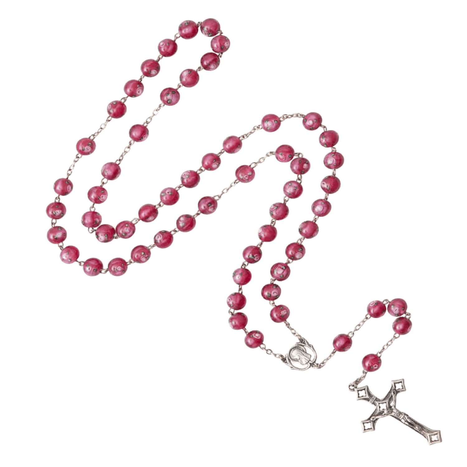 Sterling silver rosary with pink Murano glass beads with little roses. This rosary crown made with Venetian glass beads is dedicated to St Therèse of Lisieux, usually depicted with a bouquet of roses, and it is perfect for reciting the Novena to Saint Therese of the Child Jesus and the Holy Face.