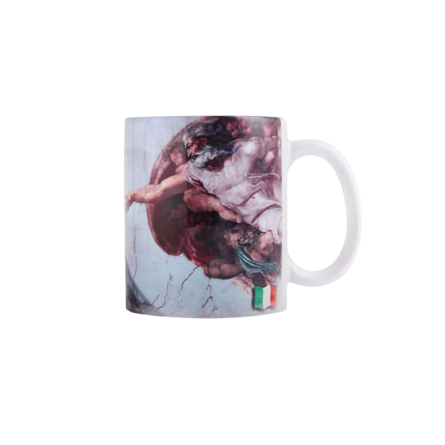 Mug depicting the Creation of Michelangelo. An original keepsake from Rome.